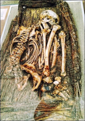 skeleton in the remains of a basketwork coffin, about 3000 BC