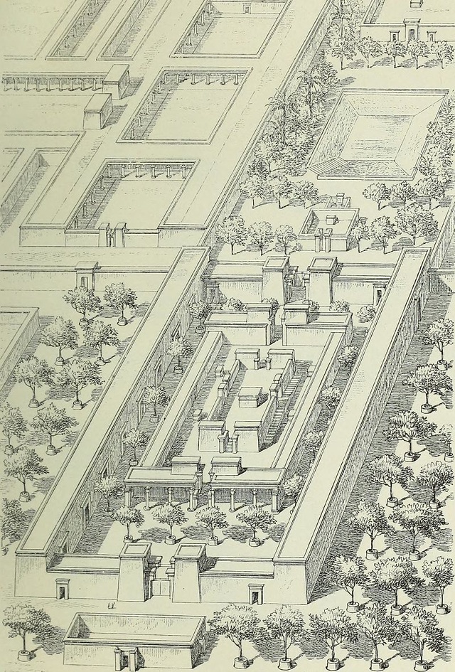 Marsha Hill of The Metropolitan Museum of Art wrote: “A central structure of the city was the Great Aten Temple...The temple's precinct encompassed a vast expanse in which traces of two complexes can be seen, one in the front third and one at the rear. In both areas, there were initial works in mud brick, which were later replaced with stone buildings. Current work at the site has revealed that at least the front building, known as the Long Temple or Gem-Aten, was substantially rebuilt again fairly late in the reign for reasons that are as yet unclear. These substantial changes over the short span of eleven years suggest the temple was a construction site for most of its existence. [Source: Marsha Hill, Department of Egyptian Art, The Metropolitan Museum of Art, November 2014, metmuseum.org \^/]