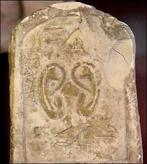 element with reliefs pf ears and the epithe Lady of Dendara and the names Taweret and Hathor