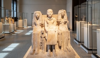 Family of the Pharaoh Ptah: On the left is his wife, Ha'tshepest, “the lady full of charms, of grace, and of love "; on the right is his daughter, 'En'euhay, the "favorite of the Pharaoh"; The small figures represent a second daughter and her son, who dedicated the statues