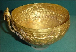 “The long open form called a situla was a drinking vessel, while jars, jugs, and bowls were used to serve food and drink. The hoards had several strainers designed to make the thick beer and wine more palatable. Vessels bearing representations of deities most certainly were dedicatory items to the temple's cult.” \^/