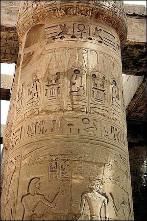 stones in the great columns of the Hypostyle Hall in Karnak Temple