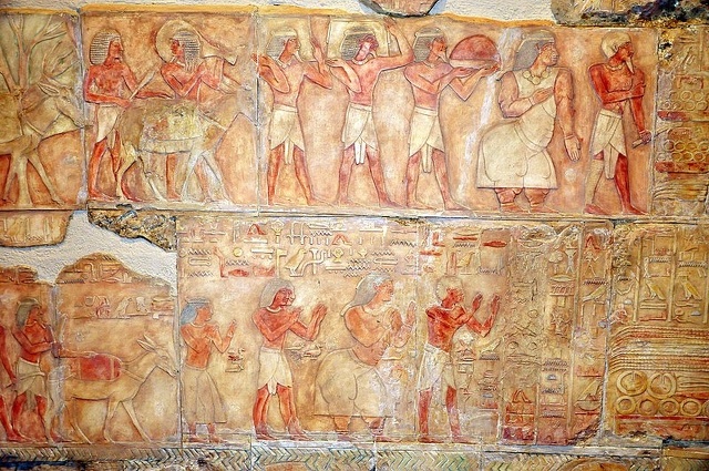 Punt, a mysterious fabled land south of Egypt, supplied Egypt with myrrh, ebony, ivory, gold, spices, panther skins, live baboons and other exotic animals and frankincense. The exact location of Punt is still unknown. It may have been in modern-day Somalia, Yemen or Oman. Traders crossed the Eastern desert and sailed from the Red Sea to get there. Much of what is known about Punt is based on reliefs found on the wall of the Deir el Bahri temple, built around 1490 B.C. in western Thebes. The reliefs show trade between rulers of Punt and emissaries of Queen Hatshepsut.