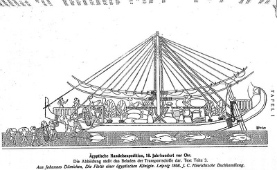 In a texts discovered and translated by Vladimir Golenischeff (1856– 1947), there is a description of a journey to obtain incense in Punt. It goes: In one of the harbours of the Red Sea lies the fleet, which the soldiers of her Majesty are to conduct into that distant country; the stately vessels are about 65 feet in length, and they are provided with thirty rowers and with gigantic sails, which stand out like wings beyond both sides of the ships. The great jars, which contain the provisions, are being conveyed on board by a rowing boat; on the shore however, near the trees to which the ships are tied, a sacrifice is being offered to the goddess “Hathor, the lady of Punt," that “she may send the wind. " Then the sails are hoisted up, the sailors climb on the yards to make fast the last ropes, the rowers dip their long oars in the water, and from the wooden partitions in the bows, in which the two captains stand, resounds the command to larboard. The ships begin to move, and thus “the royal soldiers voyage on the sea, they begin their beautiful journey to the Divine Land, and voyage happily to Punt. "