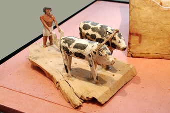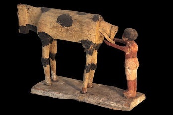 Robert Partridge of the BBC wrote: “Cattle were reared in great numbers in Egypt, and they were also imported, often as spoils of war. They were a prized possession, providing meat, milk, leather and horn. Their dung was burnt as fuel. Their leather was used to make thongs, sandals, chair seats and shields. Tomb scenes and tomb models often show the tomb owners inspecting their herds of cattle, and individual beasts were sometimes given pet names.” [Source: Robert Partridge, BBC, February 17, 2011]