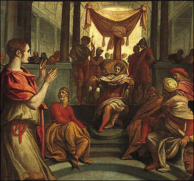 When Moses was three, one episode of his story goes, he snatched the crown off the Pharaoh's head. Dumbfounded, the Pharaoh decided to devise a test to see if Moses realized what he had done. Two plates were placed before the child: one with gold and one with red-hot coals. If he chose the gold one he was to be put to death. If he chose the one with coals he would be spared as "one without knowledge of his acts." Fortunately for him he grabbed the hot one, but unfortunately he stuck it in his mouth and seared his tongue, leaving him with halting speech.”