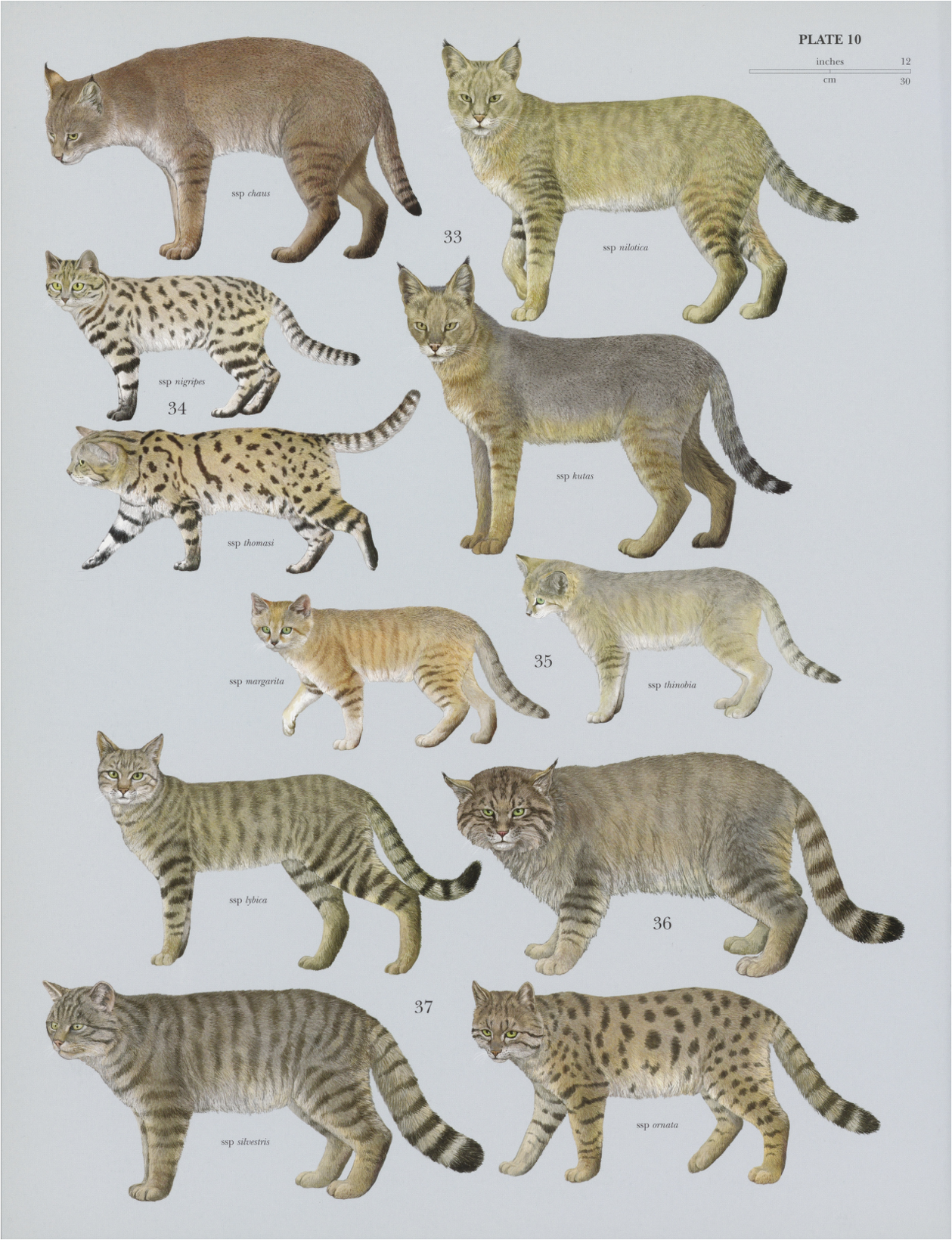 sand cat and some of its relatives: 33) Jungle Cat (Felis chaus), 34) Black-footed Cat (Felis nigripes), 35) Sand Cat (Felis margarita), 36) Chinese Mountain Cat (Felis bieti), 37) Wildcat (Felis silvestris)