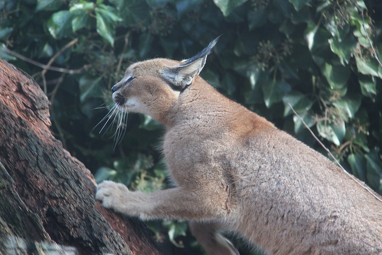 Caracals are also known as “barking cats” because of the barking noise they make when threatened. They hiss when excited or scared. They are sometimes mistaken for lynxes because of their tufted ears.In recent decades caracals have been adopted by people as pets. They have lived up to 20.3 years raised in captivity. Their average lifespan in the wild is estimated to be 12 years.