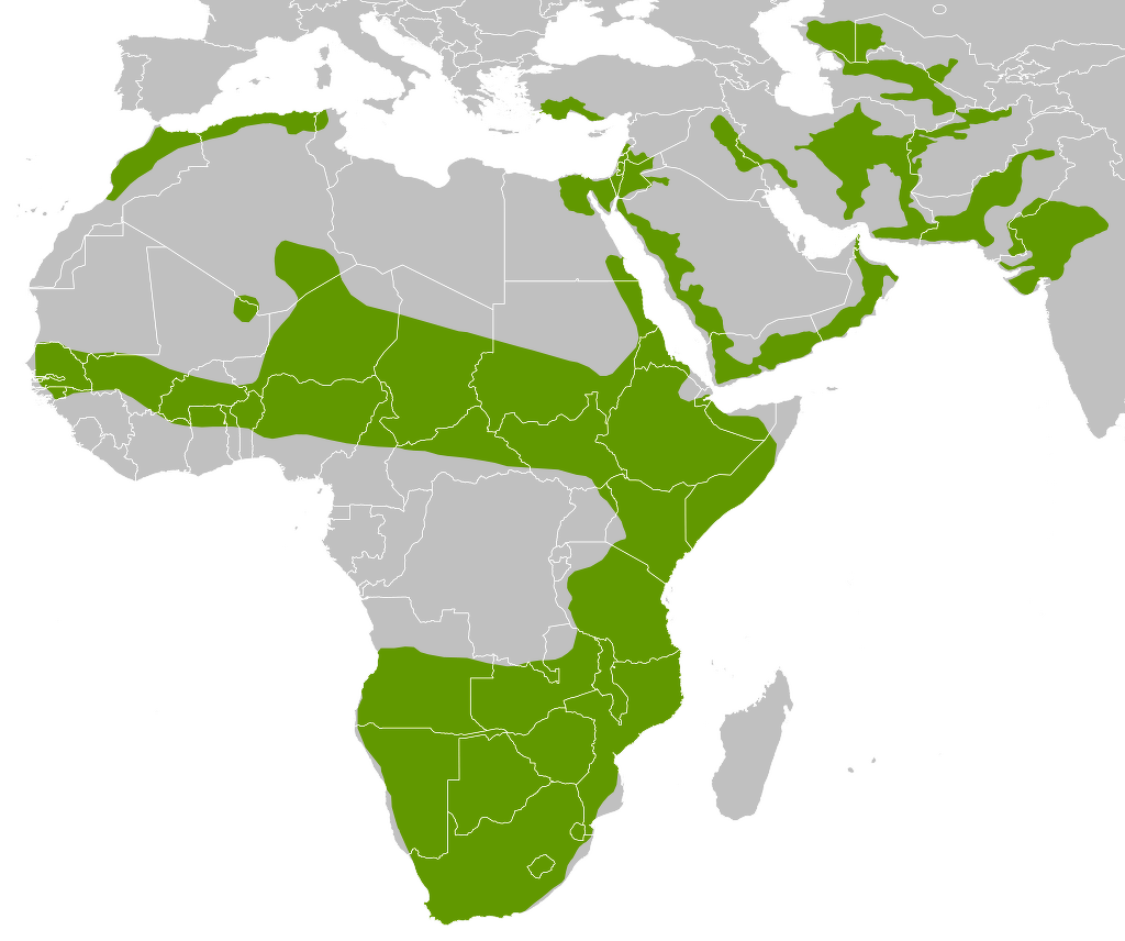 Caracals range over much of Africa, the Middle East, Central Asia and southwestern Asia. North African populations are disappearing, but caracals are still abundant several parts of Africa. Their range limits are the Saharan desert and the equatorial forest belt of Western and Central Africa. In South Africa and Namibia, caracals are so numerous that they exterminated as pests.