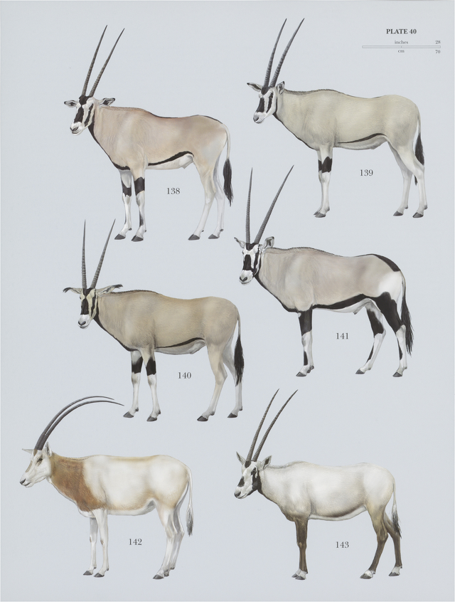 Oryx species: 138) Beisa Oryx (Oryx beisa), 139) Galla Oryx (Oryx gallarum), 140) Fringe-eared Oryx (Oryx callotis), 141) Gemsbok (Oryx gazella), 142) Scimitar-horned Oryx (Oryx dammah), 143) Arabian Oryx (Oryx leucoryx)