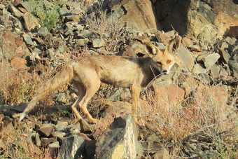 Blanford’s foxes live in found in semi-arid steppes and mountains. They prefer areas with steep, rocky slopes, cliffs, and canyons. Historically, they were thought to avoid hot lowlands as well as cooler uplands. However, they have been observed near the Dead Sea in Israel, where where melons, Russian chives, and seedless grapes are grown. Blanford's foxes have been observed up to elevations of about 2000 meters (6562 feet). An important habitat feature for Blanford's foxes is the presence of dry creek beds. Dens are chosen in areas with large rock piles.