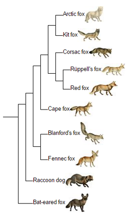 Some fox species: 27) red fox (vulpes vulpes); 28) Corsac Fox (Vulpes corsac); 29) Tibetan Fox (Vulpes ferrilata); 30) Indian Fox (Vulpes bengalensis); 31) Pale Fox (Vulpes pallida); 32) Riippell's Fox (Vulpes rueppellii; 33) Cape Fox (Vulpes chamal); 34) Blanford’s Fox (Vulpes cana); 35) Fennec Fox (Vulpes zerda)