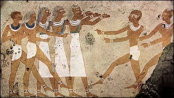 Modern Egyptians have many of the same daily chores and habits as their ancient ancestors. Bricks are still made by mixing river silt with straw and then shaping the muck into blocks and baking them in the sun; flax is still harvested by hand by pulling up the plants up by their roots; alabaster bowls are still shaped and polished with a drill weighted by stones and twisted by hand; men still tell folk tales while recreating a battle with a stick dance; women still supplicant themselves to the dead; and women winnow grain by tossing it into the wind after the grain has been still threshed by oxen going round and round with a sled over a pile of stalks. [Source Live Science]