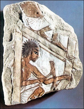 “The weaver inside the weaving house is more wretched than a woman. His knees are drawn up against his belly. He cannot breathe the air. If he wastes a single day without weaving, he is beaten with 50 whip lashes. He has to give food to the doorkeeper to allow him to come out to the daylight. The arrow maker, completely wretched, goes into the desert. Greater than his own pay is what he has to spend for his she-ass for its work afterwards. Great is also what he has to give to the fieldhand to set him on the right road to the flint source. When he reaches his house in the evening, the journey has ruined him.