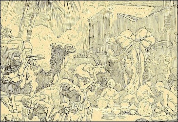 Marketplaces were frequented by private individuals (including women) as well as professional traders, both native and foreign. A poem of very ancient date tells us in fact of tradesmen who were neither the serfs of high lords, nor officials of the state, but who worked for their own living. One is said to travel through the Delta “in order to earn wages," another, a barber, goes from street to street to pick up news, a third, a maker of weapons, buys a donkey and sets forth for foreign parts to sell his wares. In the same poem we read that the weaver must always sit at home at his work, and if he wishes to get a little fresh air, he must bribe the porter; we see therefore that the poet considers him to be a bondservant. ' [Source: Adolph Erman, “Life in Ancient Egypt”, 1894]