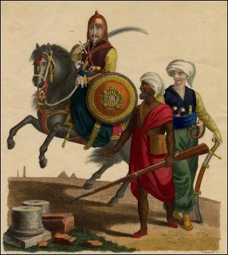 Bernard Lewis wrote in “Race and Slavery in the Middle East”: “Blacks were occasionally recruited into the mamluk forces in Egypt at the end of the eighteenth century. "When the supply [of white slaves] proves insufficient," says a contemporary observer, W. G. Browne, "or many have been expended, black slaves from the interior of Africa are substituted, and if found docile, are armed and accoutred like the rest." This is confirmed by Louis Frank, a medical officer with Bonaparte's expedition to Egypt, who wrote an important memoir on the Negro slave trade in Cairo. [Source: Bernard Lewis, “Race and Slavery in the Middle East,”Chapter 9 Slaves in Arms, Oxford University Press 1994 |]