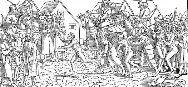 “Though black slaves no longer served as soldiers in Egypt, they still fought occasionally -- as rebels or rioters. In 1260, during the transition from the Ayyubid to the mamluk sultanate, black stableboys and some others seized horses and weapons, and staged a minor insurrection in Cairo. They proclaimed their allegiance to the Fatimids and followed a religious leader who "incited them to rise against the people of the state; he granted them fiefs and wrote them deeds of assignment." The end was swift: "When they rebelled during the night, the troops rode in, surrounded them, and shackled them; by morning they were crucified outside the Zuwayla gate." |