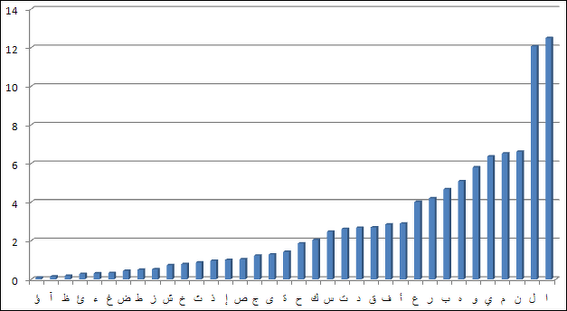 frequency distribution of Arabic letters sorted according to frequency