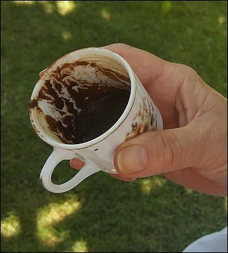 reading coffee grounds, a popular form of fortunetelling in Turkey