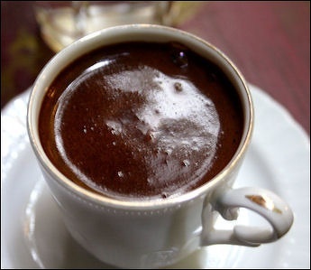 Turkish coffee is made with coffee is like regular coffee. The main difference is that the coffee is ground very fine so that it has the consistency of flour. The water, just before it boils, is poured through grounds in a strainer. With traditional Turkish coffee, the beans are ground with a mortar and pestle rather than a mill. Boiling water is poured over the grounds through a silver sieve into a pot. This is brought to a boil and poured through a sieve again and then served.