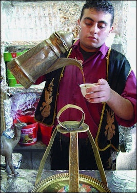 The “farash” system depends on a server who brings coffee or tea to people in their office or shop. He often has an office and is summoned by a buzzer. When tea or coffee is finished it should be given back to the server. It is considered rude to put it on a table because the cup or glass may be refilled and given to someone else. [Source: “Middle East and North African Customs and Manners” by Elizabeth Devine and Nancy Braganti (St. Martin’s Press)]