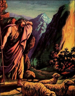 One Day while 80-year-old Moses was tending a flock of sheep in the desert near Mt. Sinai, after escaping from Egypt, a bush caught on fire: "And an angel of the Lord appeared unto him in a flame of fire out of the midst of the bush: and he looked, and behold, the bush burned with fire, and the bush was not consumed." From the flames came a voice: "Moses, Moses...I am the God of thy Father, the God of Abraham, the God of Isaac, and the God of Jacob." It was the first time God had spoken to anybody on Earth for over 600 years. "I will send thee unto Pharaoh," the voice continued, "that thou mayest bring forth my people the children of Israel out." ☼