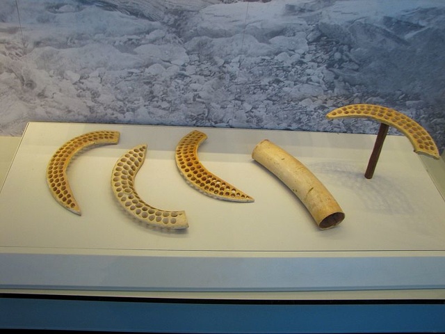 In 1993, archaeologists found a skeleton of a Copper Age warrior in a cave near Jericho. The skeleton was found in a reed mat and linen ocher-died shroud (probably woven by several people with a ground loom) along with a wooden bowl, leather sandals, a long flint blade, a walking stick and a bow with tips shaped like a ram's horns. The warrior's leg bone showed a healed fracture.