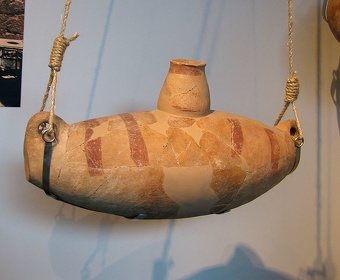 Gerald A. Larue wrote: “In Mesopotamia, at Tell Halaf on the Khabour River, a tributary of the Euphrates, hard, thin pottery with a beautiful finish produced by high firing at controlled heats was found. This pottery from the middle of the fifth millennium is decorated with geometric designs in red and black on- a buff slip, but animal and human figures also appear. One figure appears to represent a chariot, thus indicating the use of the wheel. Houses were constructed out of mud brick, but reed structures plastered with mud were also built. Cones of clay, painted red or black or left plain, were often inserted in the mud walls to form mosaics and to protect the wall from weathering. [Source: Gerald A. Larue, “Old Testament Life and Literature,” 1968, infidels.org ]