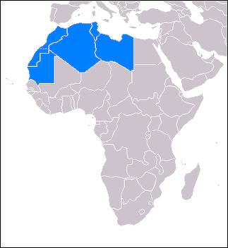 Maghreb (Maghrib): present-day Libya, Tunisia, Algeria, Morocco, Western Sahara and Mauritania