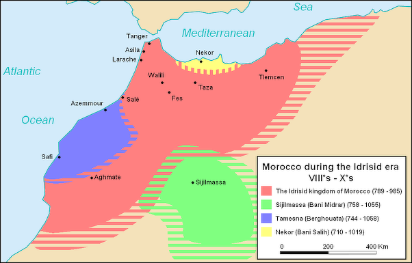 One of the Kharijite communities, the Idrisids established a kingdom around Fez. It was led by Idriss I, the great grandson of Fatima, the daughter of Muhammad, and Ali, the nephew and son-in-law of Muhammad. He is believed to be have come from Baghdad with the mission of converting the Berber tribes.