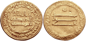 Abu al-Abbas Abd Allah ibn Harun al-Rashid 786/9– 833), better known by his regnal name al-Ma'mun, was the seventh Abbasid caliph, reigning from 813 until his death in 833. He succeeded his half-brother al-Amin after a civil war, during which the unity of the Abbasid Caliphate was weakened by rebellions and the rise of local warlords. Much of al-Ma'mun’s domestic rule was taken by pacification campaigns. Well educated and deeply interested in scholarship, al-Ma'mun promoted the Translation Movement, the flowering of learning and the sciences in Baghdad, and the publishing of al-Khwarizmi's book now known as "Algebra". He is also known for supporting the Islamic theological doctrine of Mu'tazilism and for imprisoning Imam Ahmad ibn Hanbal, the rise of religious persecution. Under his rule the Abbasids resumed large-scale warfare with the Byzantine Empire.. [Source: Wikipedia]