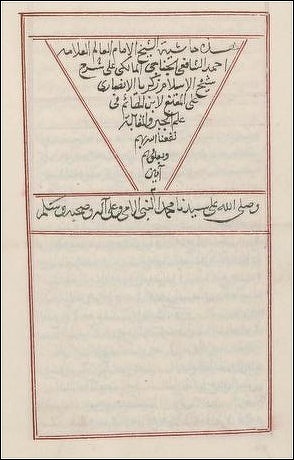 page 1 of the Malaki text "The Commentary of the Šay , the Head, the Extremely Knowledgeable A mad al-Šāfiʻī al-Janājī al-Mālikī on the Commentary of the Šay al-Islām Zakarīyā al-An ārī on the Compendium on the Science of WDL"