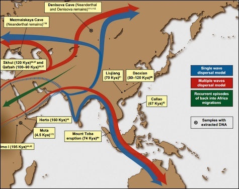 single and multiple migration waves into Asia