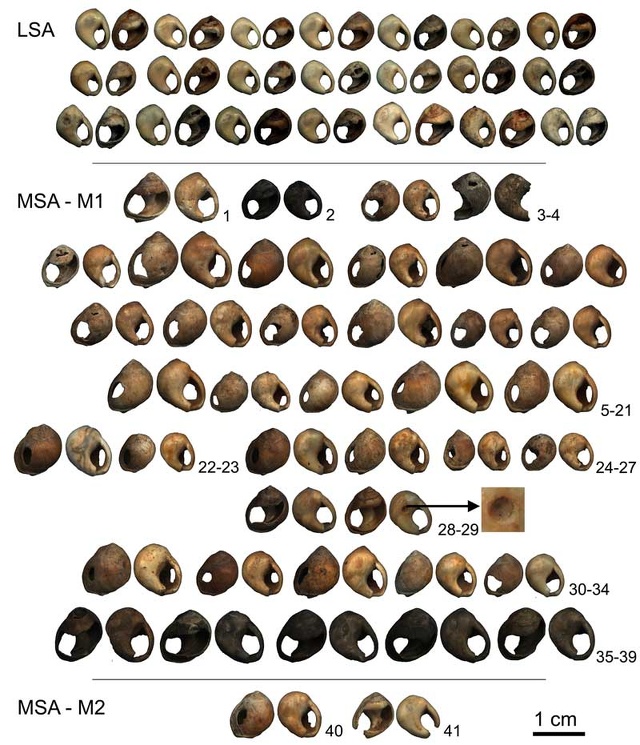 A number of important discoveries have been made there. The site has been repeatedly excavated since Raymond Dart first worked there in 1934. Amongst earlier discoveries were the burial of a baby with a Conus seashell at 74,000 years ago, a variety of bone tools, an ancient counting device, ostrich eggshell beads, resin, and poison that may once have been used on hunting weapons.