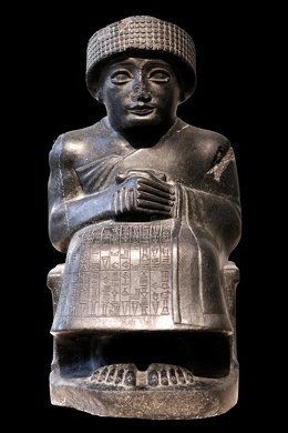 The Statue of Sumerian Worshiper, dated at 2600 B.C., is a stone statue originally placed in a temple as prayer for its donor. The Stone Statue of a Sumerian Scribe, dated at 2400 B.C., is a representation of an official of the city-state of Ginsu who may have founded a system of weights and measures.