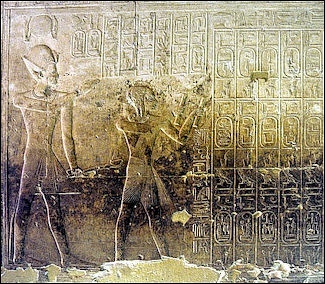 Royal lists created millennia later, during the New Kingdom, have created the confusion. One of the most complete is the Abydos King List, engraved upon the wall of the mortuary temple of Seti I (13th century B.C.). Engraved on the wall, Seti and his heir, Ramses (the future Ramses II), face rows of cartouches bearing the names of Egypt’s past pharaohs. On this list, however, the first king listed is Menes, not Narmer.